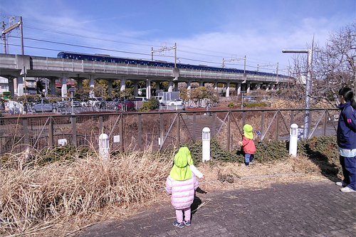 「電車だぁ‼」(R8.2月) 2026年03月02日 暖かい日は、この時期もお散歩に出かけます。保育者と手をつないで歩くのが、とっても上手になりました(*^^)v 電車が見えると、フェンスに近付いて見ている0歳児クラスです♬