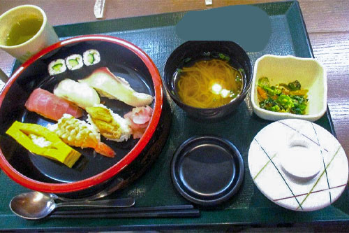 マグロ・エビなど定番のネタにお吸い物・茶わん蒸し等盛り沢山のメニュー。