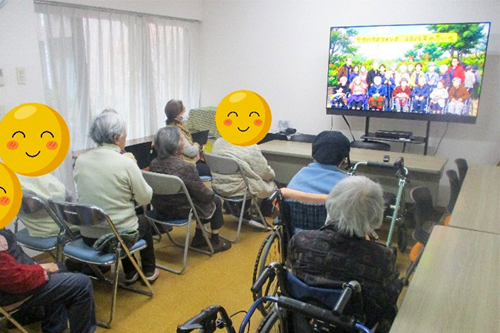 最後に、娯楽室で職員が作った『ケアハウス 2025年振り返りムービー』を