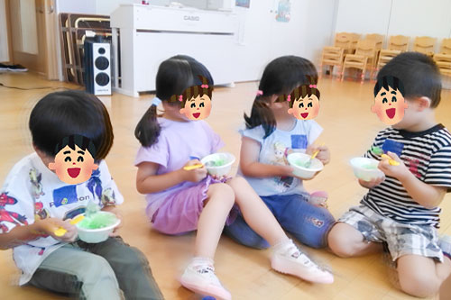 ゲームの合間には、かき氷を食べてニコニコでした。