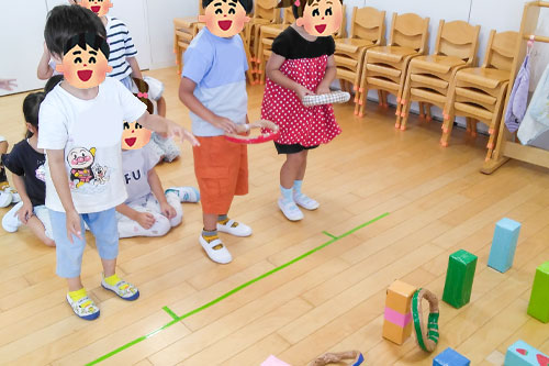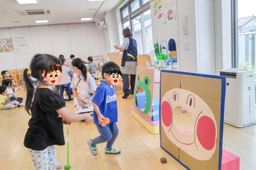 今年は2階のお部屋を広げて、盆踊りを踊り、射的、輪投げ、ボール投げを楽しみました。