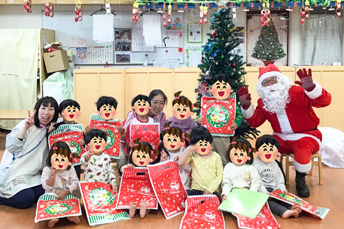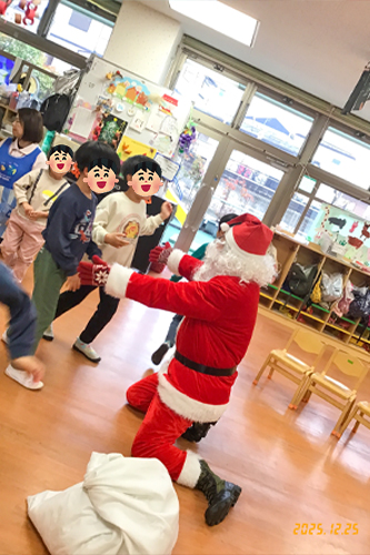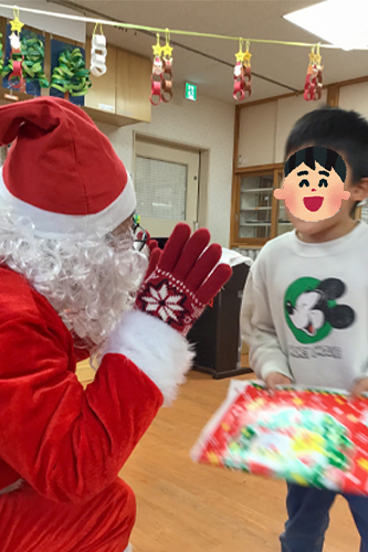 サンタさんの登場にみんな大喜び!みんなの質問にも答えてくれたり、 プレゼントをもらったりととても楽しいクリスマス会でした!