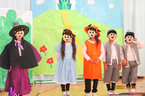 幼児の部では、いろいろな楽器を使って合奏したり、ダンスをしたり、オペレッタを発表しました。各クラスの特徴が出ていて、大きく成長したところもお見せすることができました。はっぴょうかいの後は、他のクラスの出し物で好きな役を演じて楽しみました。