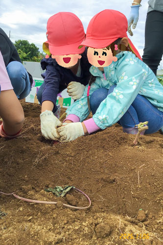 豊作でした♪(R7.11.6) 2025年11月13日 秋の味覚のさつま芋掘りに出掛けました。畝から少し見えるさつま芋、みんなでせっせと土をかき分けて、た~くさん収穫できました!今日はお芋を持ち帰ります(*^^)v どんなお料理に変身するのかな?